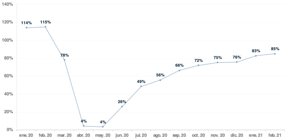 Figura 1. Estimación de ingresos del sector del fitness (enero 2020 – febrero 2021)