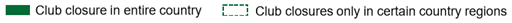 Resumen de los cierres de clubes en determinados países europeos
