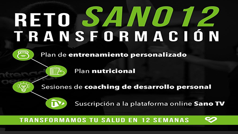 Sano Center ofrece 5 plazas totalmente gratuitas para un plan transformación en sus centros Sano a nivel nacional. Esta acción, bajo el nombre Reto Sano 12, se trata de un programa de entrenamiento personalizado, acompañado de una asesoría nutricional personalizada, suscripción a Sano TV y sesiones de coaching de desarrollo personal. Este compendio de acciones persiguen un cambio a nivel físico y emocional en las personas que las realicen, reduciendo los kilos de más adquiridos durante los meses de pandemia, paliando los niveles de estrés y ansiedad, fortaleciendo el sistema inmunológico y mejorando la salud en general.