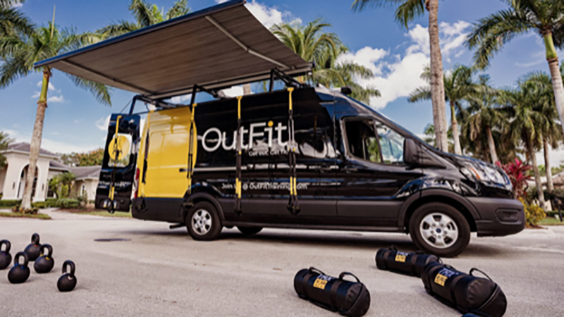 OutFit fue construido para dominar el entrenamiento al aire libre con equipos de entrenamiento TRX®, pistas de sonido energizantes de iHeart Media®, diseños de camionetas que mitigan el clima y campos de entrenamiento únicos en parques, playas, vecindarios y otros espacios públicos convenientes e inspiradores.