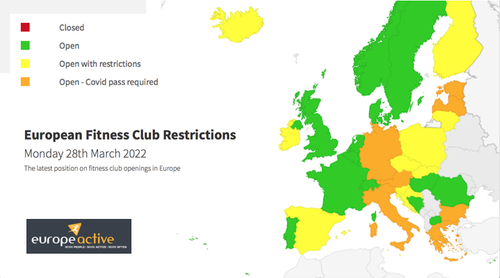En este comienzo de 2022, EuropeActive actualiza, a través de su mapa interactivo, la información más reciente sobre aperturas y restricciones de gimnasios, requisitos de COVID Pass y otros protocolos de seguridad en toda Europa. Esta información varía frecuentemente en cada país y regiones y se pueden comprobar en su web.