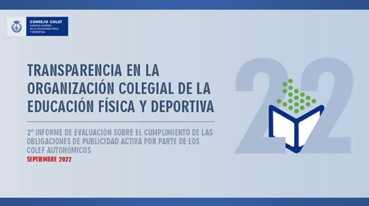 Sin embargo, el Consejo COLEF se ha propuesto como objetivo que los 17 Colegios Oficiales también atiendan al cumplimiento normativo de las obligaciones en materia de transparencia. Por eso, en 2021 el propio Consejo General realizó un primer ‘Informe interno de evaluación sobre el cumplimiento de las obligaciones de publicidad activa por parte de los COLEFs autonómicos’, así como los correspondientes informes individuales de cada uno de los 17 Colegios Oficiales (véase nota).