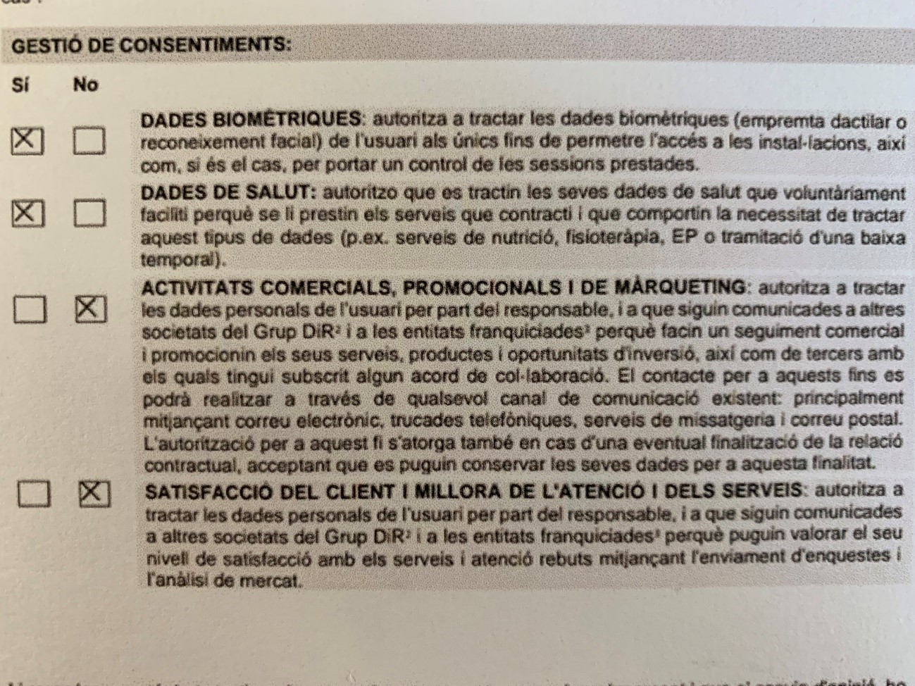 - Copia incluida en dicho artículo de un documento de “Consentimiento sobre el tratamiento de datos personales para determinadas finalidades adicionales” (en catalán).