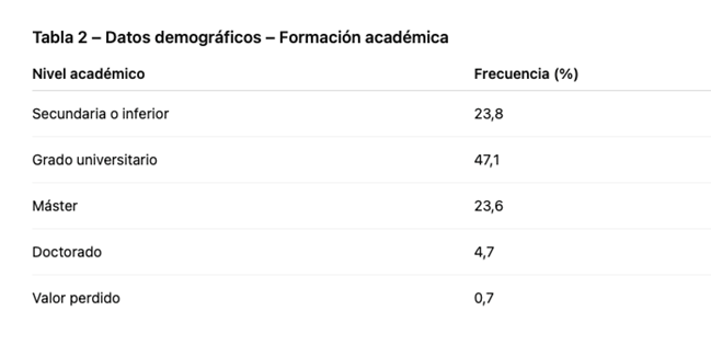 Participaron 554 personas de Portugal: profesionales del fitness (instructores, directores técnicos, propietarios, operadores y coordinadores), profesionales de la salud vinculados al ejercicio, y estudiantes de educación física, fitness y deporte. La edad media fue de 34,93 años y la experiencia profesional media en el sector del fitness fue de 10,2 años. Los datos demográficos se presentan en las Tablas 1, 2, 3, 4 y 5.