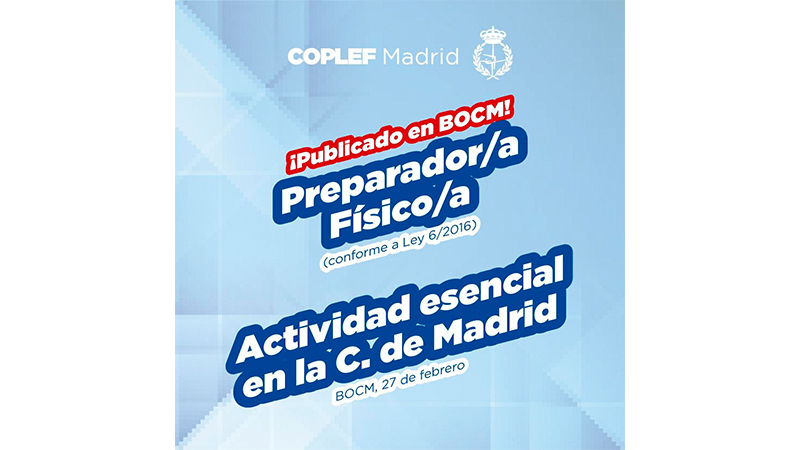 La semana pasada, COPLEF Madrid ha remitido un documento a la Consejería de Sanidad, ante cualquier evento de rebrote y medidas que puedan surgir en la...