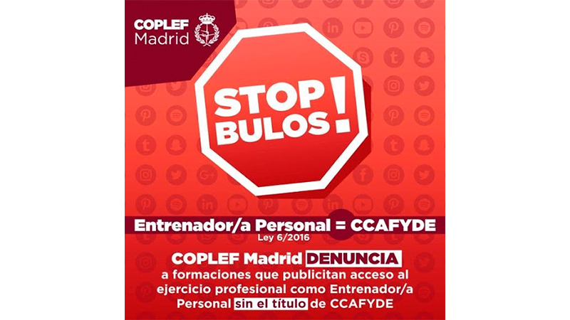 COPLEF Madrid ha denunciado ante las autoridades competentes, a formaciones que publicitan el acceso al ejercicio de la profesión de Entrenador/a Personal bajo...