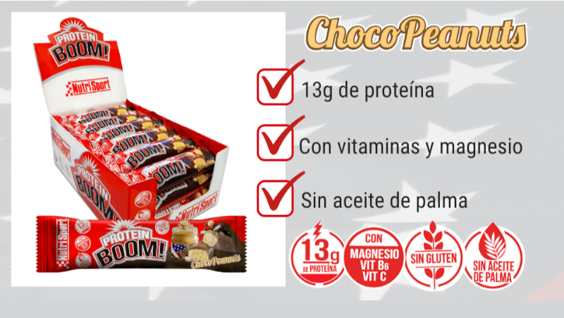 Tras el éxito de la barrita PROTEIN BOOM sabor Cookies & Cream, NutriSport lanza PROTEIN BOOM ChocoPeanuts, una deliciosa barrita que combina...